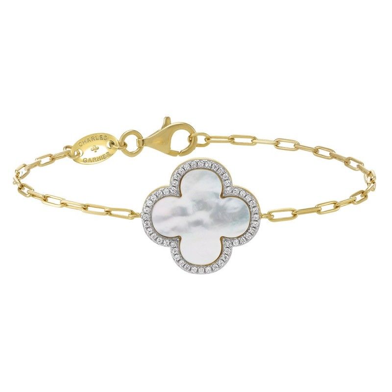 Bracelet argent doré CHARLES GARNIER avec oxydes de zirconium et nacre